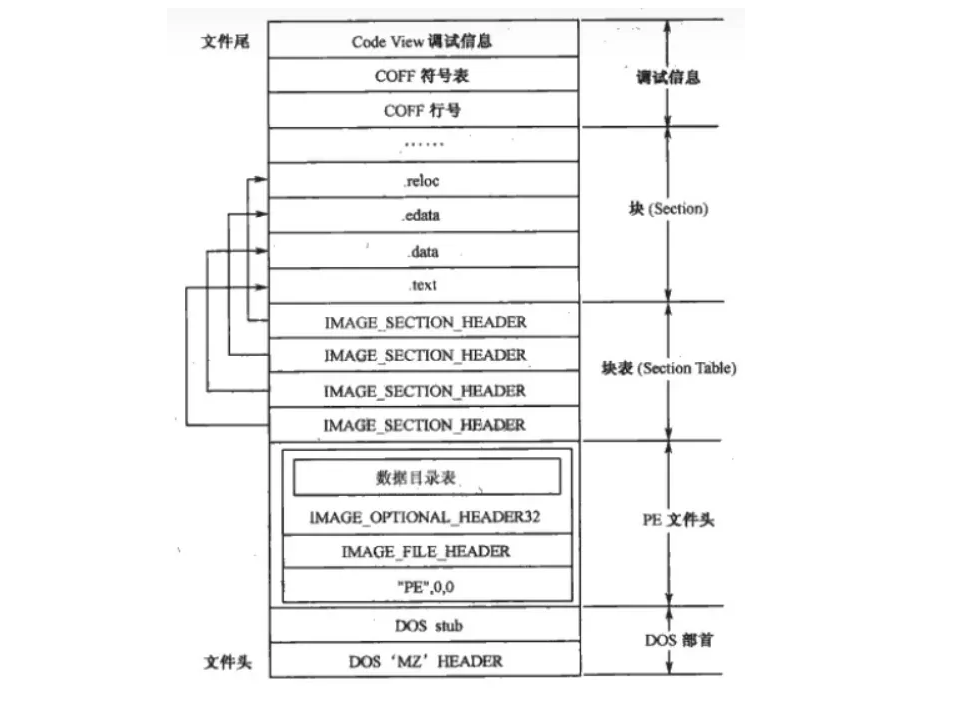 这里主要关心的是 .text 代码段,一个 PE 文件的完整格式如下图