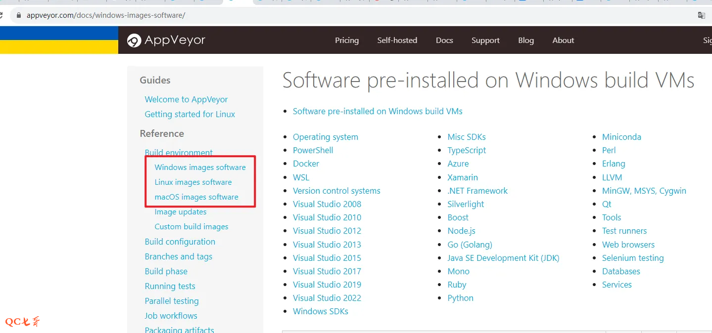 windows 平台提供的构建软件列表参考: https://www.appveyor.com/docs/windows-images-software/