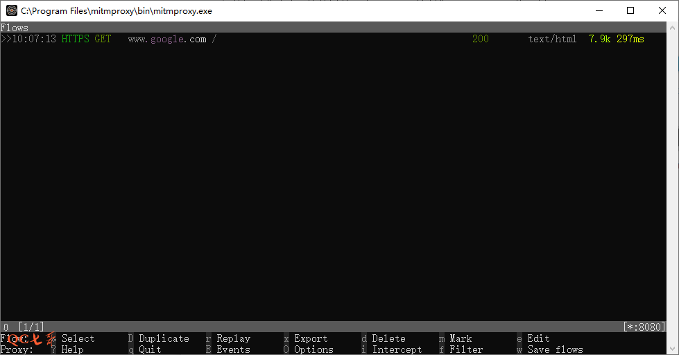 本地运行 python 的请求代码,从 mitmproxy 软件上就可以看到有请求记录了