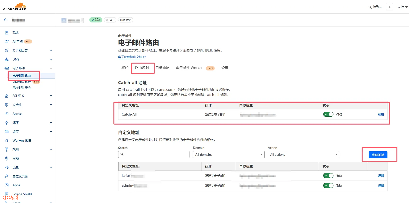 下面的 Catch-all 可以一起配置上,表示其他没添加的地址也一并转发