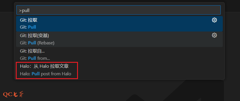 在配置好 vscode 的 halo 插件之后,命令行输入 pull 选择 Pull post from Halo 回车