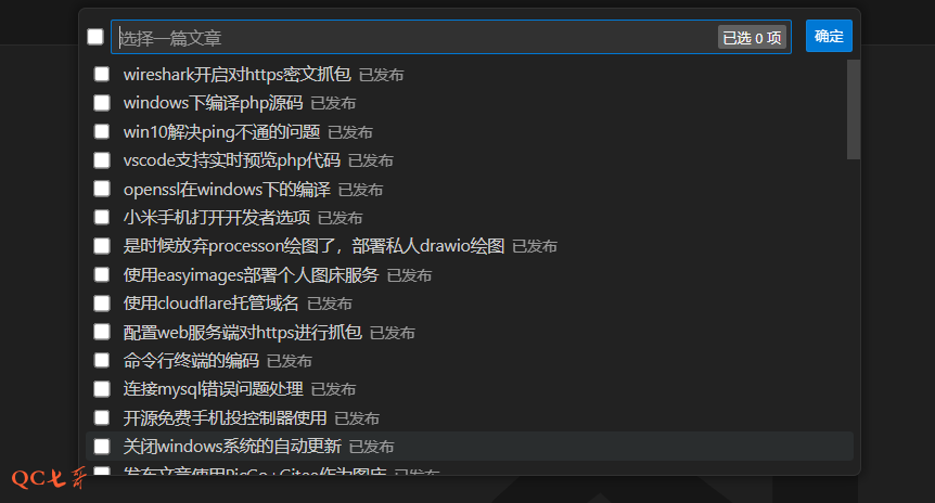 稍等一会,就会出现一个文章的下拉列表,勾选需要导出的文章,然后点击确定下载