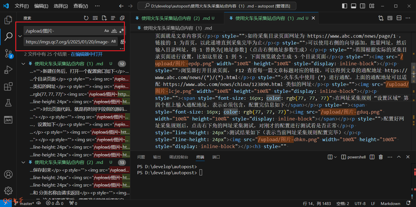 文章下载到本地之后,就可以在 vscode 中直接对图片地址进行批量替换了