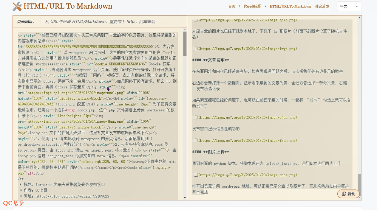 可以在本地通过 https://devtool.tech/html-md 工具将文章主体转为纯 markdown 格式