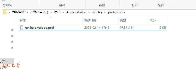 和 halo 相关的还有一个配置文件 run.halo.vscode.pref,在 C:\Users\Administrator\.config\preferences 目录下