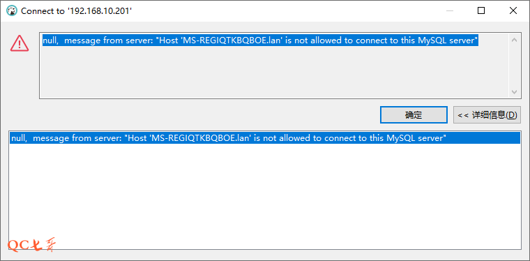 出现这个错误的原因,是 mysql 服务没有开启对外部机器的访问权限