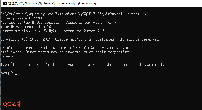 在命令行终端中,输入以下命令,然后输入密码进行 mysql 登录