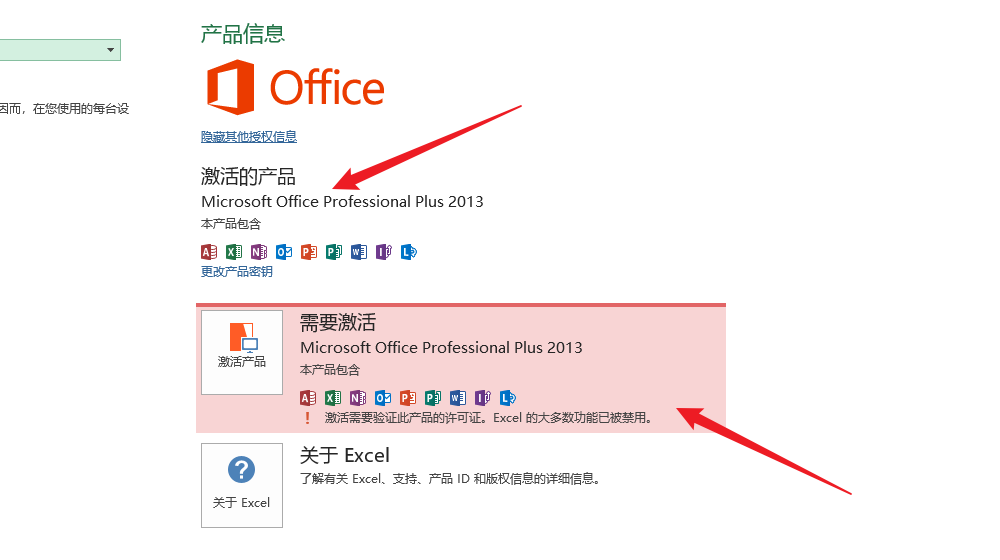 在激活后打开 excel,发现之前 excel 顶部那个醒目的红色未注册提示,已经没有显示了,看来还是有点效果的