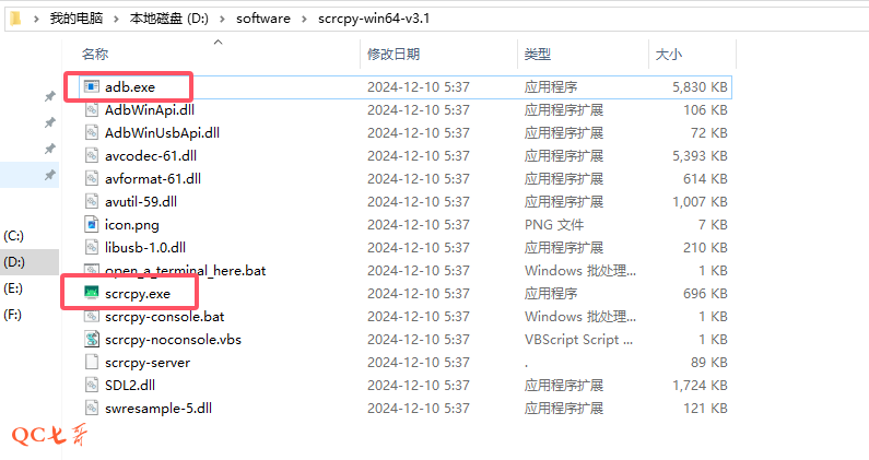 软件的目录结构如下,主要用到 adb 以及 scrcpy 这两个