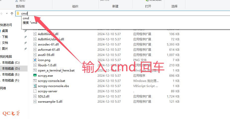 在 scrcpy 软件的安装路径下,运行控制台命令窗口