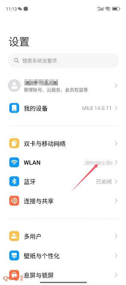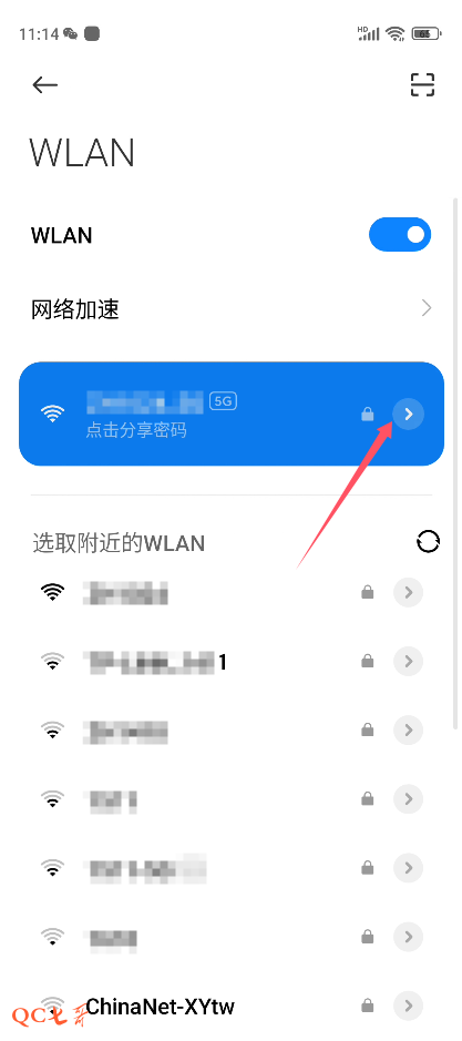 在设置中,点击已经连接的 WIFI,然后再点击 WIFI 右边的小箭头