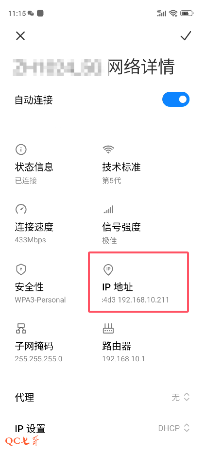 然后网络详情界面就可以查看到手机的 ip 地址了
