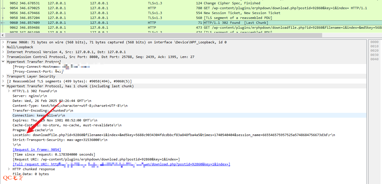 第一次发起的请求携带了 cookie,可以正常响应 302,并返回了 Location 地址