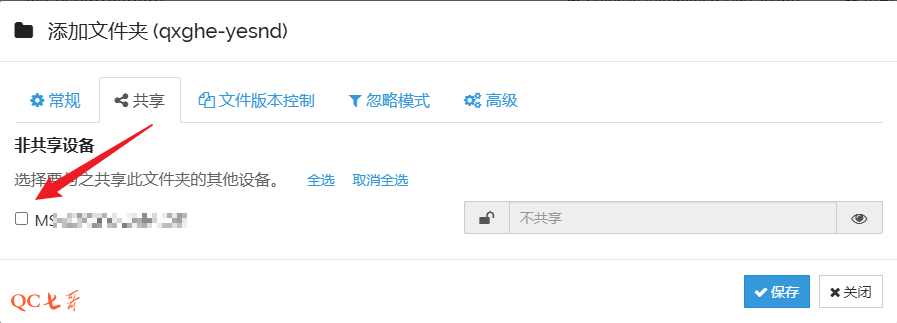 然后在 “共享” 中勾选同步的设备,以及 “高级” 中设为 “仅接收”