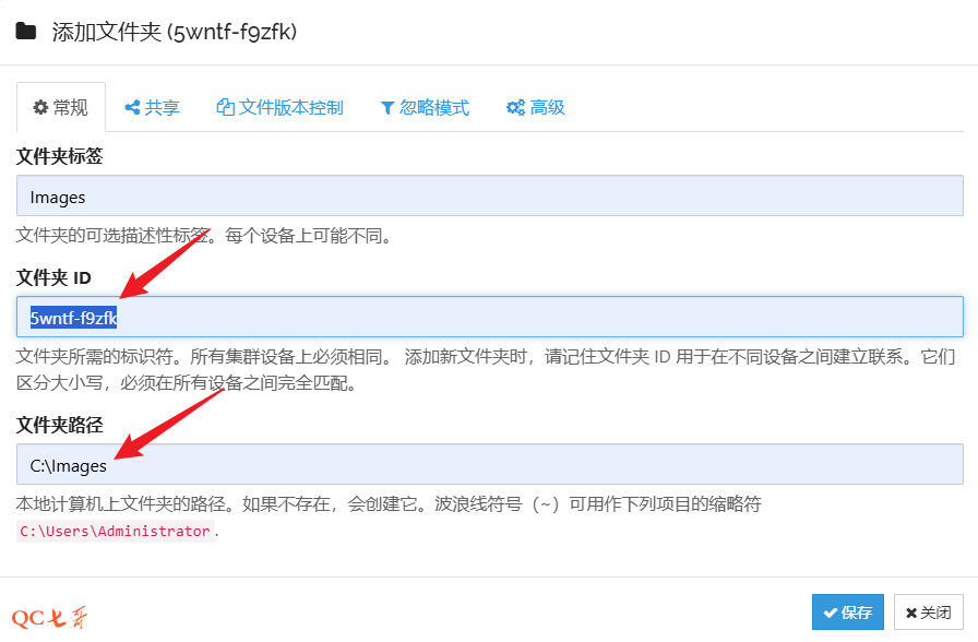 也可以进行手动添加,点击 “添加文件夹” ,指定的 “文件夹ID” 和前面的一致,以及本地的文件夹路径