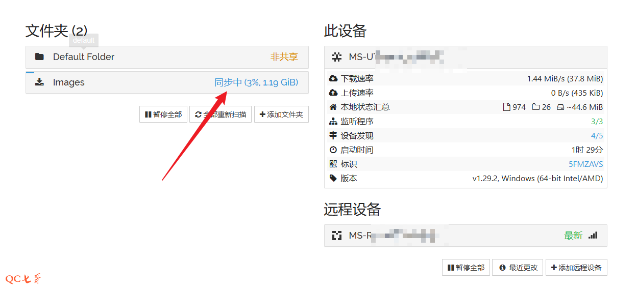 文件同步至少要部署两个节点,然后在这两台设备上启动 syncthing 服务