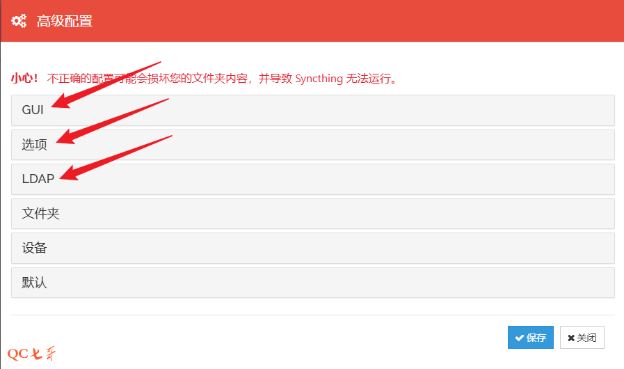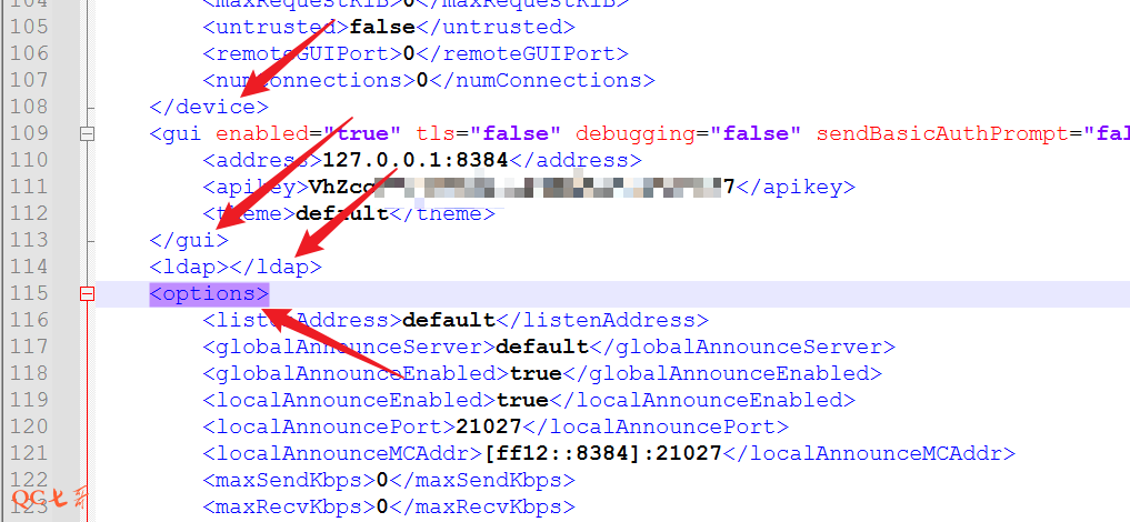 如果需要修改 Syncthing 的配置,但是 web 方式不方便的情况下,可以直接修改配置文件的项