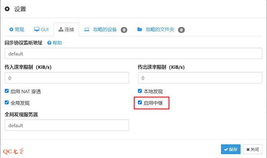 当两个节点无法直接建立连接时,默认会通过中继进行数据同步,中继默认是开启的,也可以手动关闭掉