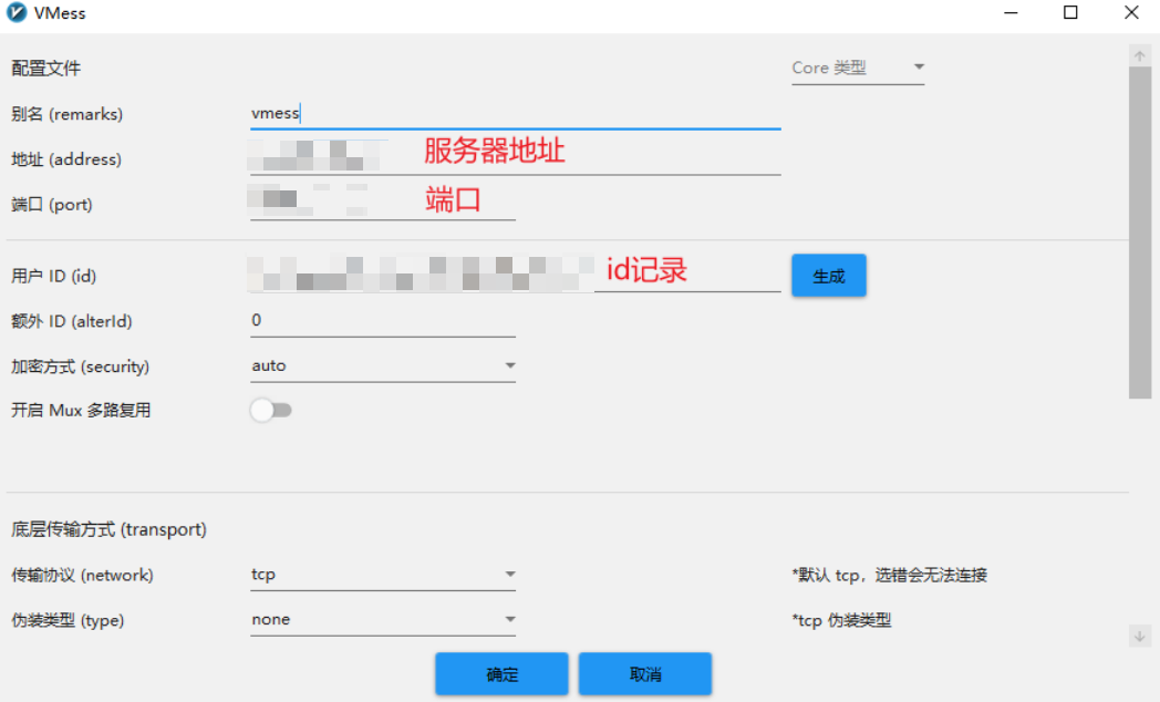 在本地客户端启动后,添加一个 vmess 的配置,这里的 vmess 是和服务端配置中的 protocol 字段对应的,需要前后保持一致