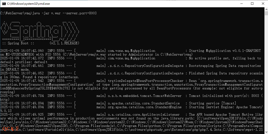 启动成功后,终端窗口会有提示信息,没问题的话会正常监听,比如我这里监听在 8003 端口