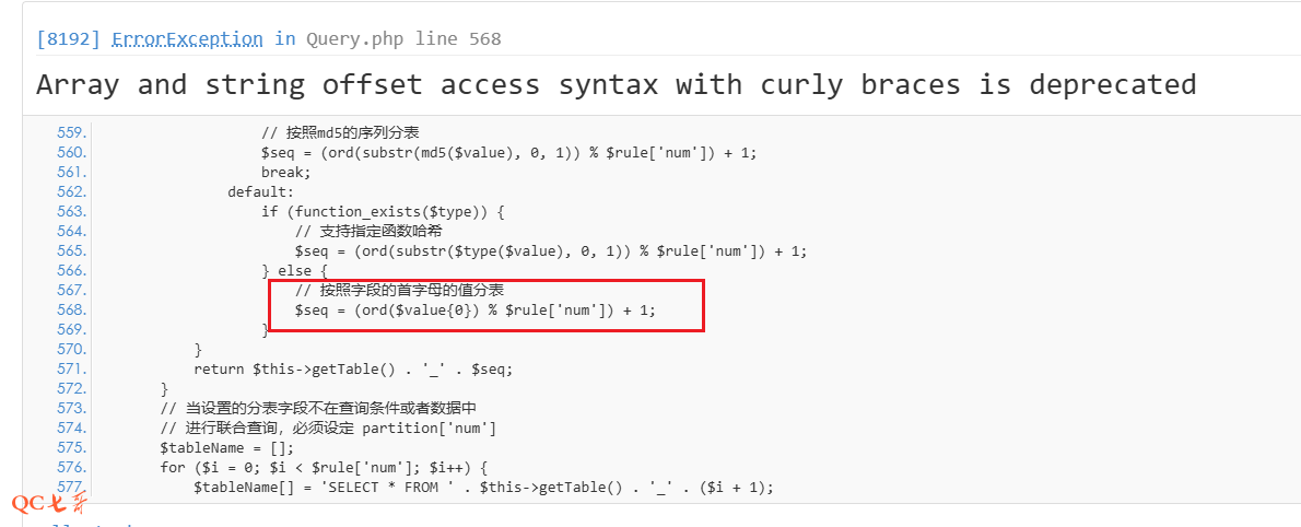 打开 thinkphp\library\think\db\Query.php 文件,定位到 568 行,将大括号 {} 修改为中括号 [] 就可以了
