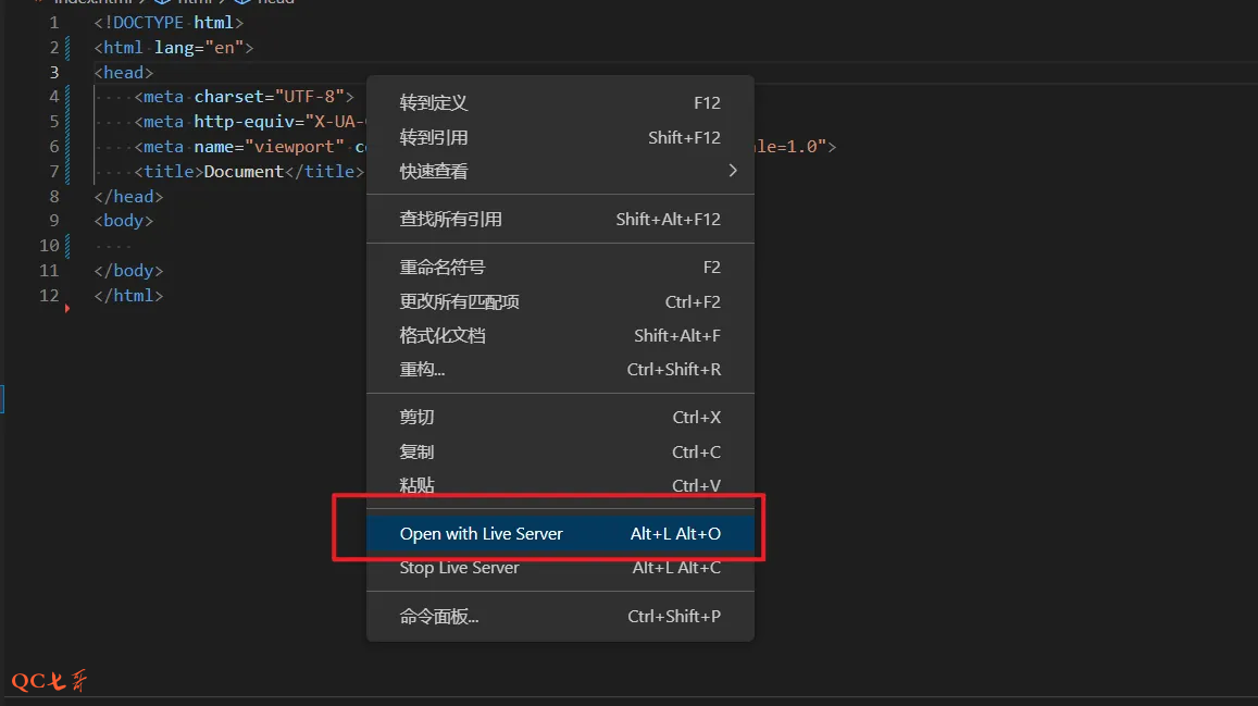 插件安装后,不需要配置,打开html文件,右键点击 Open with live Server 即可在浏览器中进行预览了