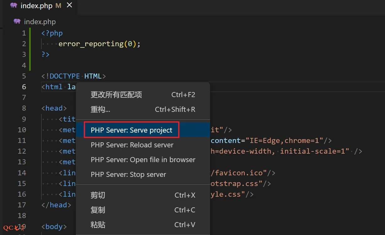 预览 php 代码不需要使用上述的 Live Server 插件,这里使用的是 php server 插件