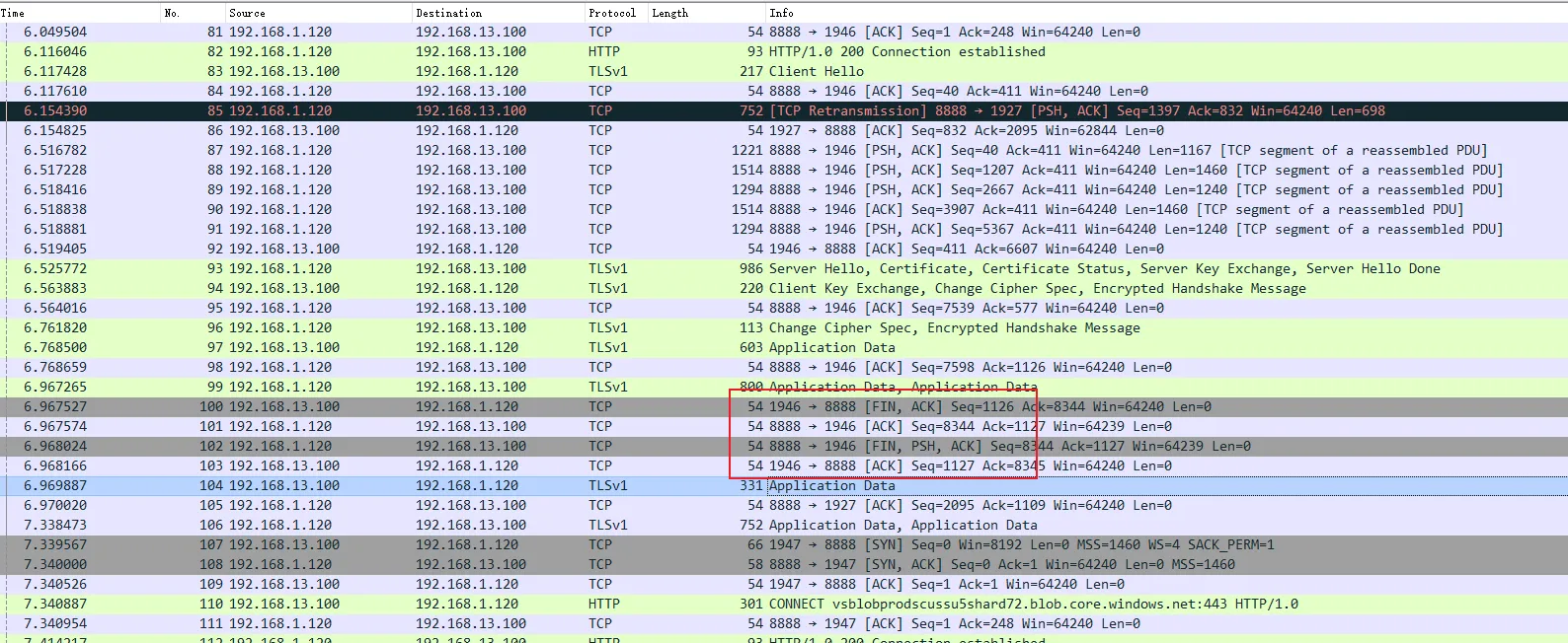 通过 _NT_SYMBOL_PROXY 环境变量设置为宿主机的代理后, 重新进行下载操作结果也是一样的,在建立起来 tls 之后主动进行 FIN 操作